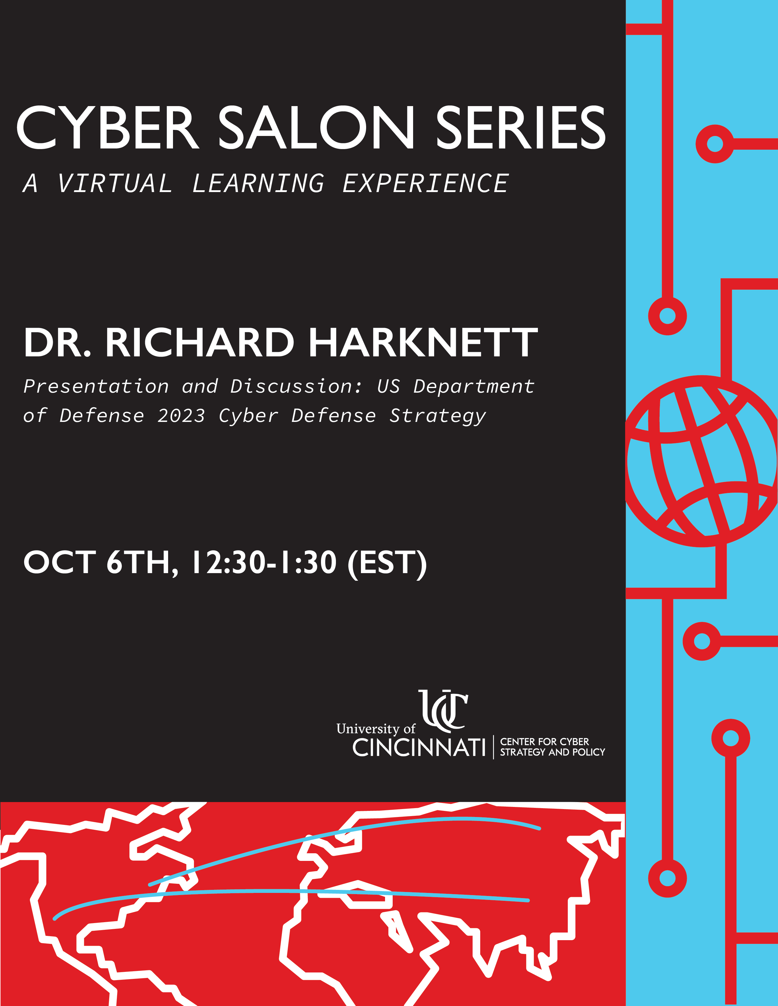 The Center for Cyber Strategy and Policy (CCSP) hosts public discussions on current cybersecurity events and research. Detailed information, event links, and flyers for upcoming and previous Cyber Salons can be found below.