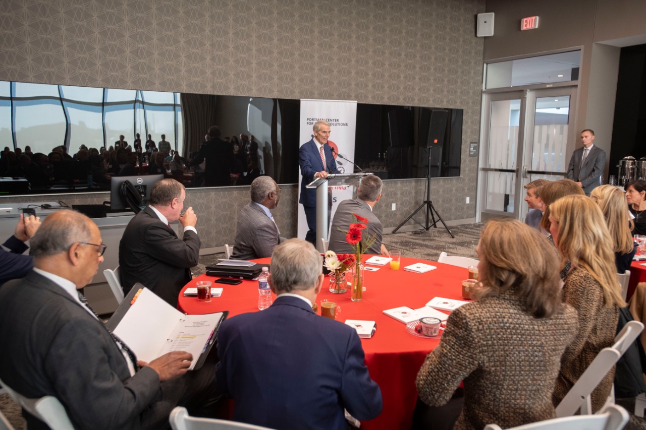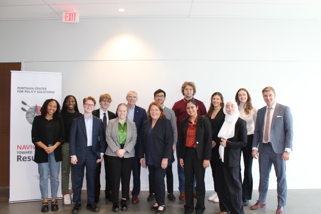 The Portman Center Public Leadership Awards honor leaders committed to bipartisanship, civility, and problem-solving. Event proceeds support the Portman Center program for students pursuing public policy internships, co-ops, and experiences, with the funds directly funding stipends, travel, and career development workshops.