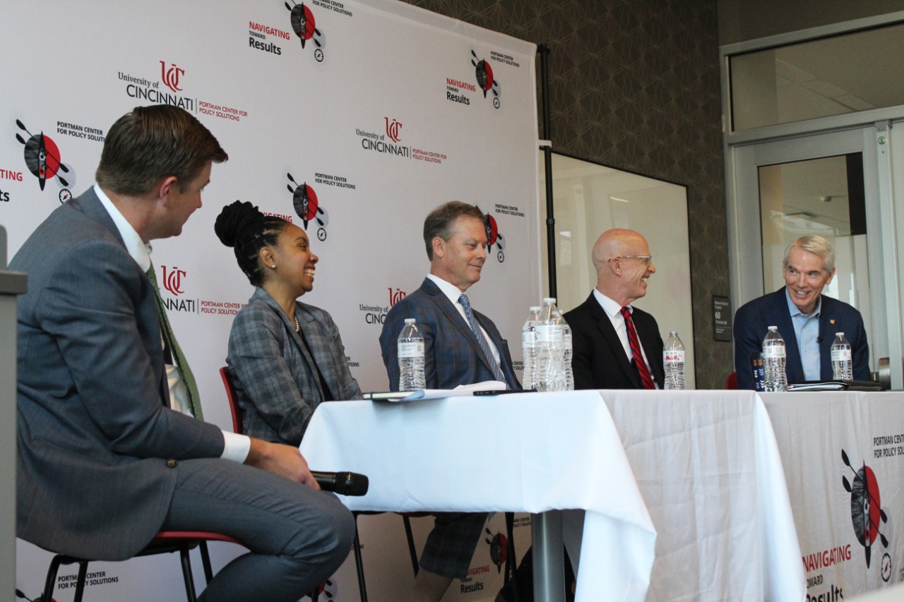 Inaugural Portman Center Symposium focused on Artificial Intelligence (AI) convened local and national leaders in the policy space, including Dr. Daniel Ragsdale (Deputy Assistant National Cyber Director, White House), Sheryl Long (Cincinnati City Manager), Chip Pickering (CEO, Incompas), Rob Portman (former U.S. Senator representing Ohio), and Dr. Richard J. Harknett (Director, School of Public and International Affairs and Director, Center for Cyber Strategy and Policy, University of Cincinnati).